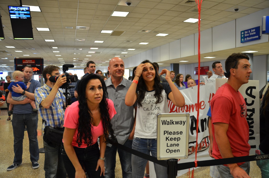 Watching anxiously for Dalton to come down the escalator