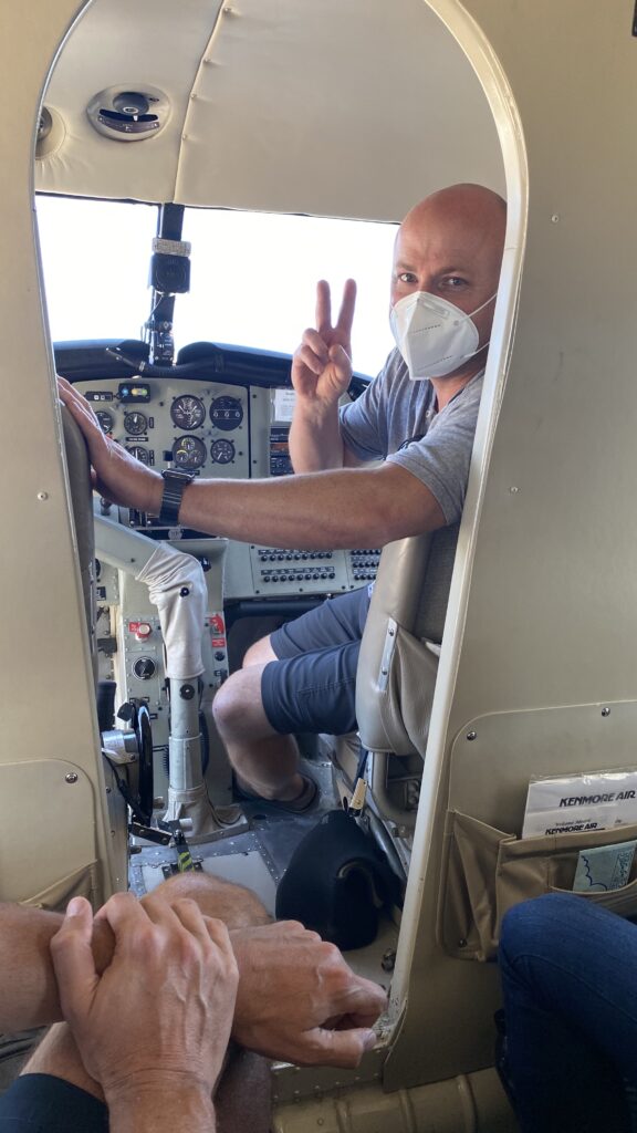 Once we arrived at the Seatac airport we took a car service over to catch a Kenmore air sea plane that was to fly us over to Roche Harbor where my friend’s yacht was waiting to pick us up. My husband was like a kid at Christmas getting to fly on a sea plane (it’s been on his bucket list) and you can imagine his excitement when he asked to ride in the cockpit with the pilot and they said yes.