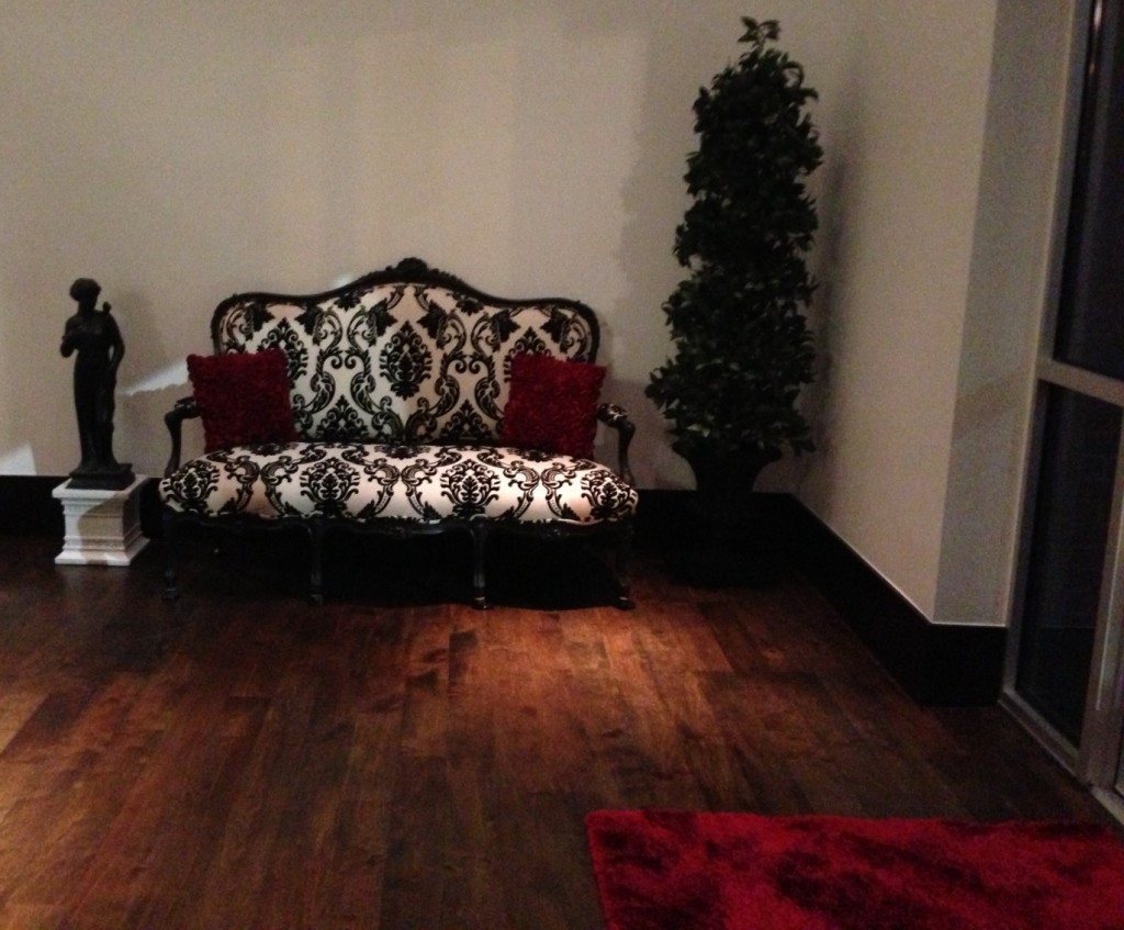 one side of lobby (just needs the mirror above couch installed now)